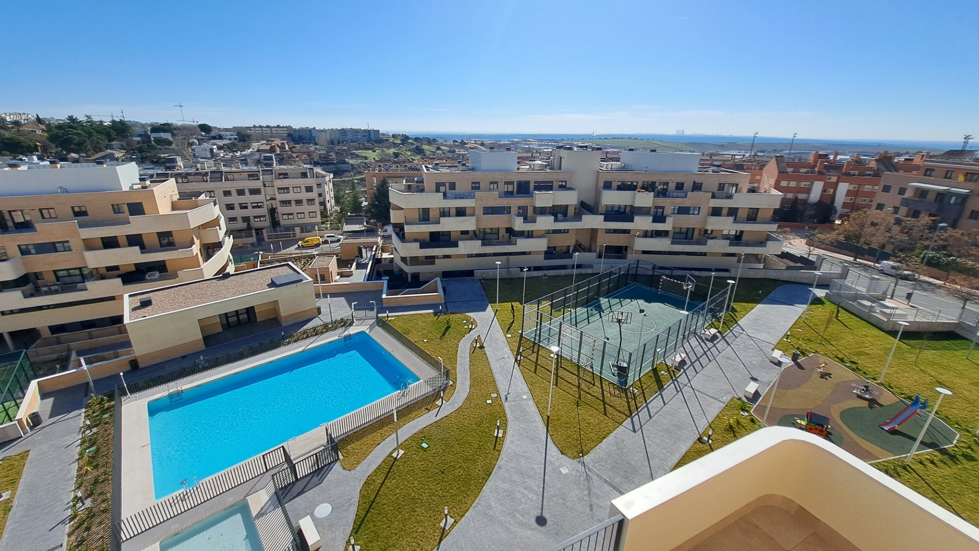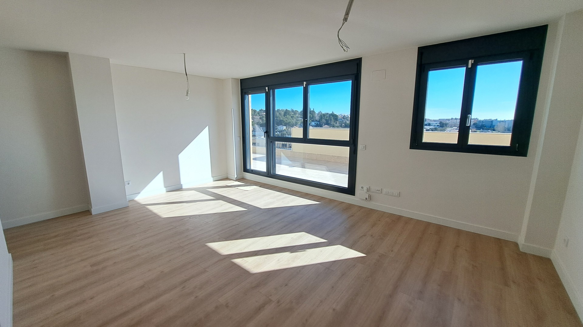 TENANI SERVICIOS INMOBILIARIOS, la inmobiliaria de Tres Cantos desde 1993, alquila ático a estrenar situado en urbanización con portero, piscina, pista de pádel, parque infantil y sala comunitaria. Situado junto al colegio Héroes del 2 de Mayo y cerca de la estación de tren. Superficie construida registral: 115,55 m2 (vivienda), 109,45 m2 (terraza). Distribución: salón; terraza; cocina con electrodomésticos; tendedero; pasillo-distribuidor con armario empotrado; 3 dormitorios con armarios empotrados; 2 baños, 1 exterior en suite. 2 Plazas de garaje y trastero. Agua caliente, así como suelo radiante y refrigerante mediante sistema de aerotermia central con contadores individuales. Fianza: 1 mensualidad. Garantía adicional: 2 mensualidades.