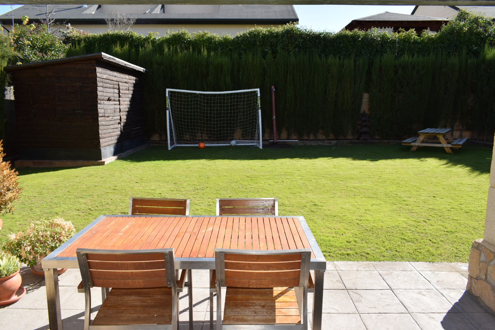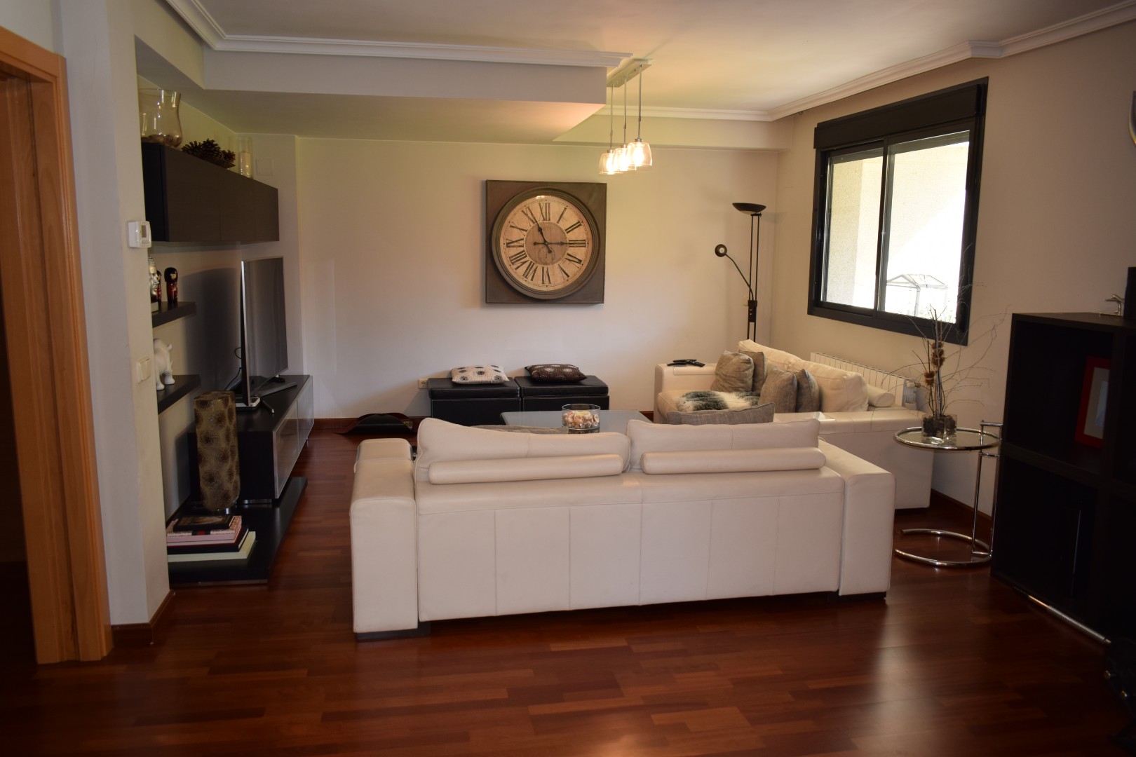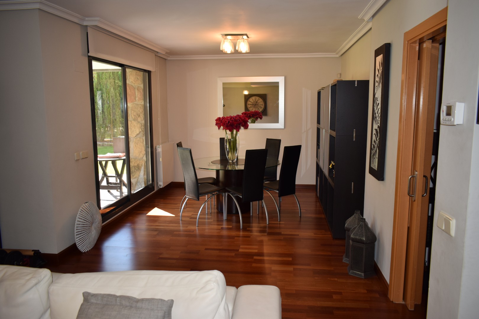 Chalet pareado situado en urbanización con piscina y pista de pádel. Superficie: 213 m2 de vivienda y 504 m2 de parcela. Distribución: planta baja de 130,5 m2 (hall; salón; cocina; baño; habitación con armario empotrado; jardín con porche; garaje), planta alta de 82,95 m2 (4 habitaciones con armarios empotrados, 1 con terraza; 2 baños exteriores, 1 en suite). Caldera individual de gas.
