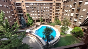 TENANI SERVICIOS INMOBILIARIOS, la inmobiliaria de Tres Cantos desde 1993, alquila piso en urbanización con portero, piscina y jardín; situado junto a la estación de tren y con todos los servicios cercanos. Superficie construida registral: 84,49 m2. Distribución: hall; salón; cocina con electrodomésticos; tendedero; pasillo-distribuidor; 2 dormitorios con armarios empotrados (1 con balcón); 2 baños (1 en suite). Caldera individual de gas y aire acondicionado en salón y dormitorio principal. Plaza de garaje y trastero. Fianza: 1 mensualidad. Garantía adicional: aval bancario de 2 mensualidades. NUESTROS HONORARIOS LOS PAGAN ÚNICA Y EXCLUSIVAMENTE LOS ARRENDADORES.