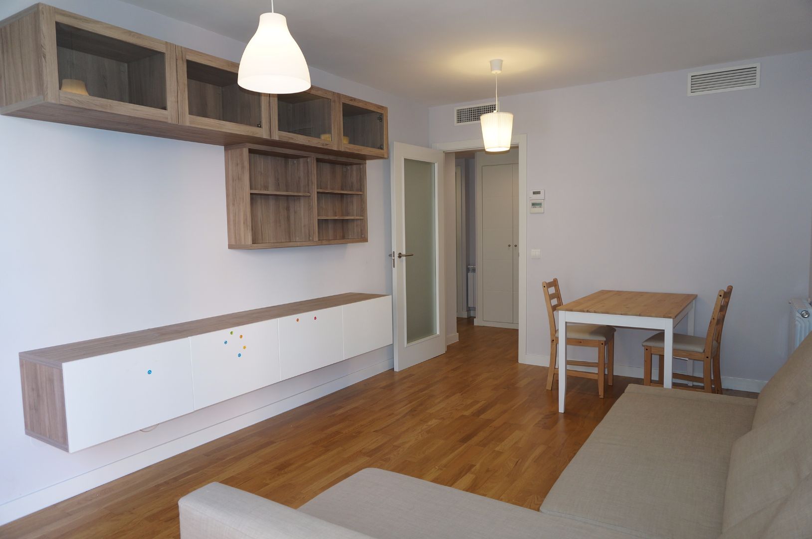 Apartamento amueblado situado en urbanización con portero, piscina, parque infantil, gimnasio y sala comunitaria; junto a los supermercados Lidl, Aldi, BM e Hiber y a parada de autobús (712, L1, L3, N701). Superficie: 68 m2. Distribución: hall con armario empotrado; salón; terraza; cocina; habitación con armarios empotrados; baño. Caldera central con contadores individuales, AA de conductos. Plaza de garaje y trastero. 1 mes de fianza + 2 meses de garantía adicional. Honorarios inmobiliaria: medio mes + IVA.