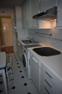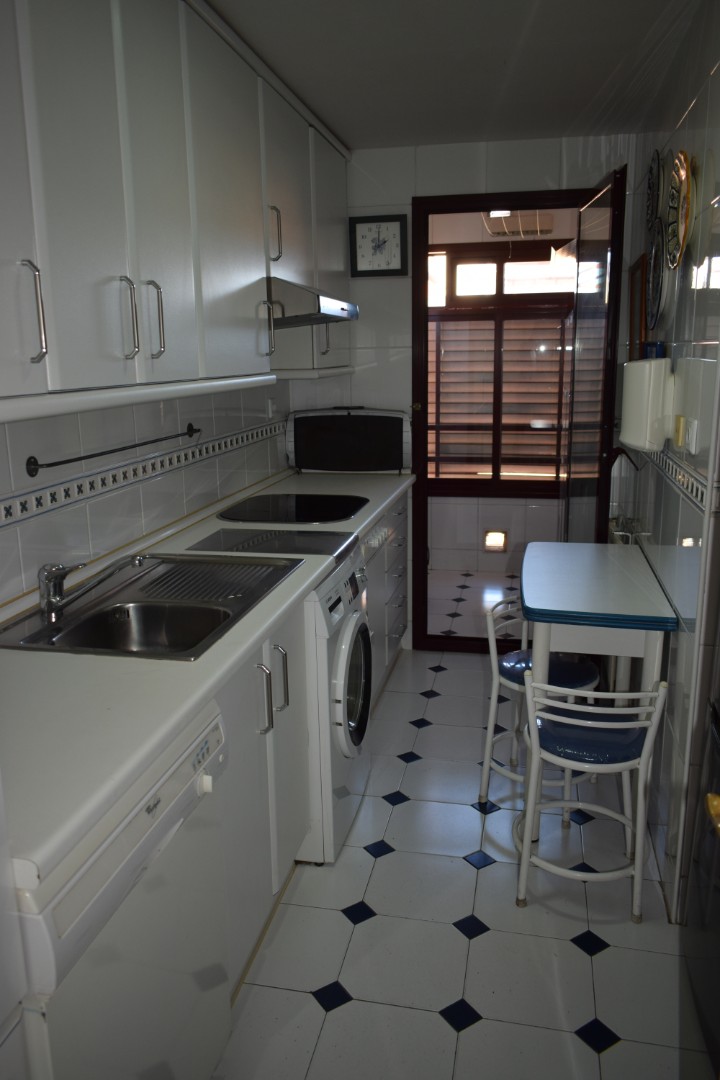 Piso en urbanización con piscina y zona ajardinada. Situado muy cerca de la estación de tren de cercanías. Superficie: 99,70 m2. Distribución: hall con armario empotrado; salón; cocina; terraza-tendedero; 3 habitaciones con armarios empotrados; 2 baños, 1 en suite. Caldera individual de gas. Plaza de garaje doble en el mismo edificio y trastero en Sector Oficios nº 27. Garantías: 1 mes de fianza + 2 meses de aval bancario.